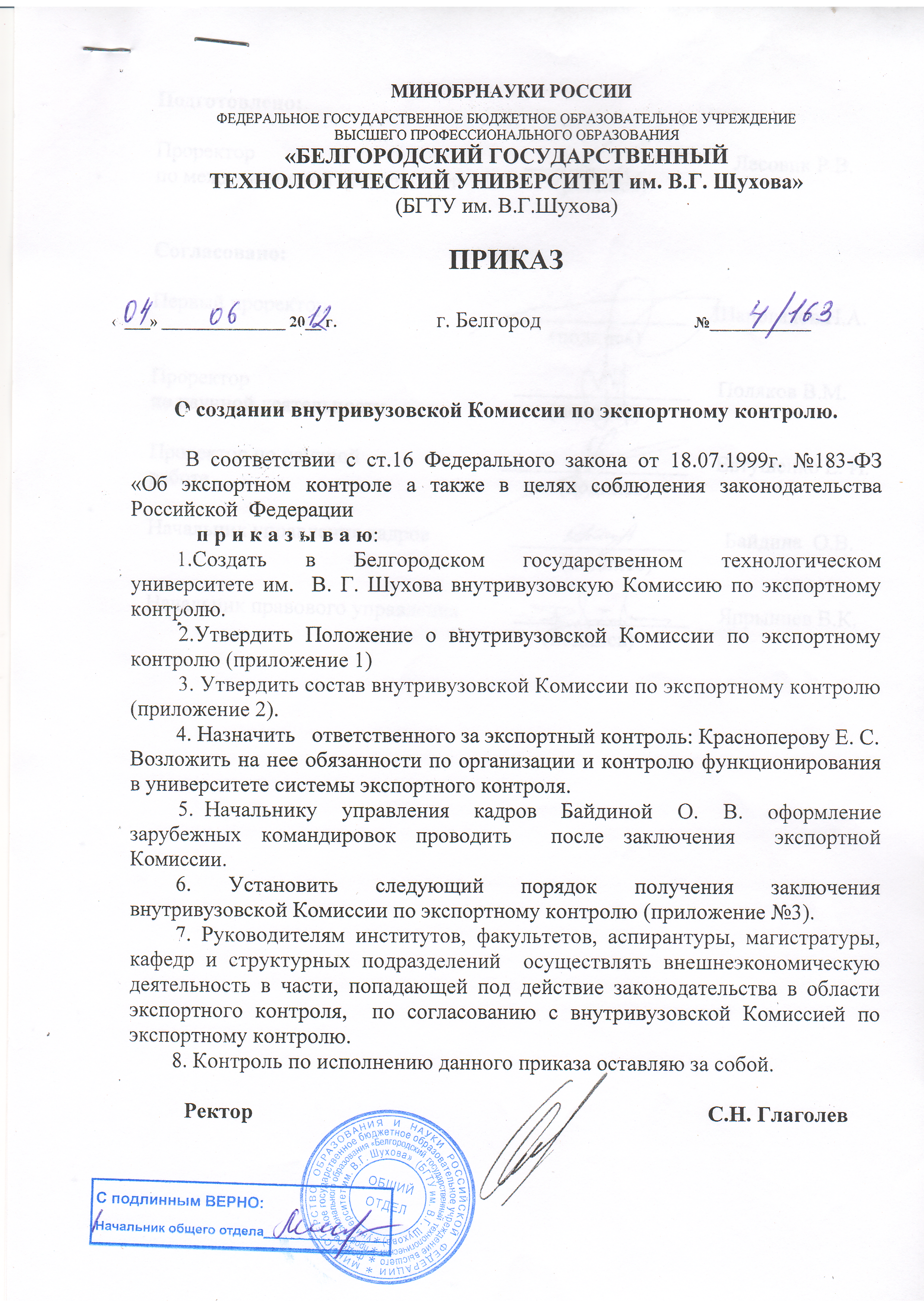 Отдел экспортного контроля БГТУ им.В.Г.Шухова